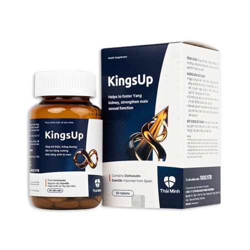 KingsUp là viên uống chứa bộ đôi hoạt chất Ostholodin và Damilib giúp bổ thận tráng dương, tăng cường sản sinh hóc môn nam trong cơ thể, khôi phục sinh lực nam giới. Sản phẩm được khuyên dùng cho nam giới đang gặp những vấn đề về sinh lý yếu, mãn dục sớm.